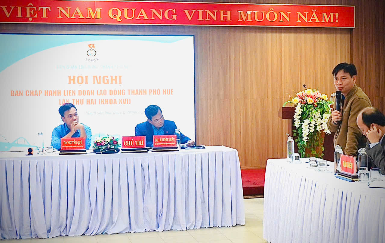 HỘI NGHỊ BAN CHẤP HÀNH LIÊN ĐOÀN LAO ĐỘNG THÀNH PHỐ KHÓA XVI (KỲ HỌP THỨ II) Ngày 12/03/2026, tại Hội trường tầng 5, Liên đoàn Lao động (LĐLĐ) thành phố Huế diễn ra Hội nghị Ban Chấp hành LĐLĐ thành phố khóa XVI, kỳ họp thứ II nhằm thảo luận, tham gia ý kiến và thông qua nhiều nội dung quan trọng liên quan đến ...